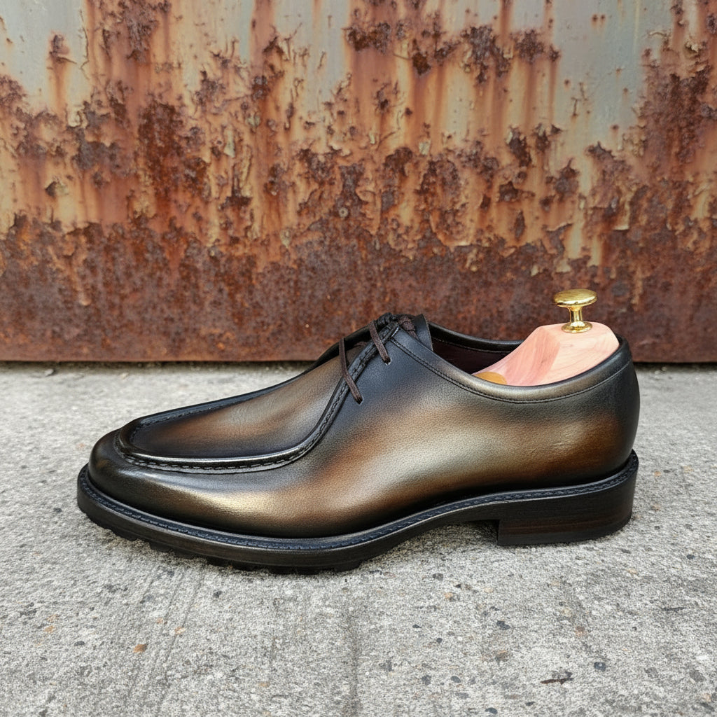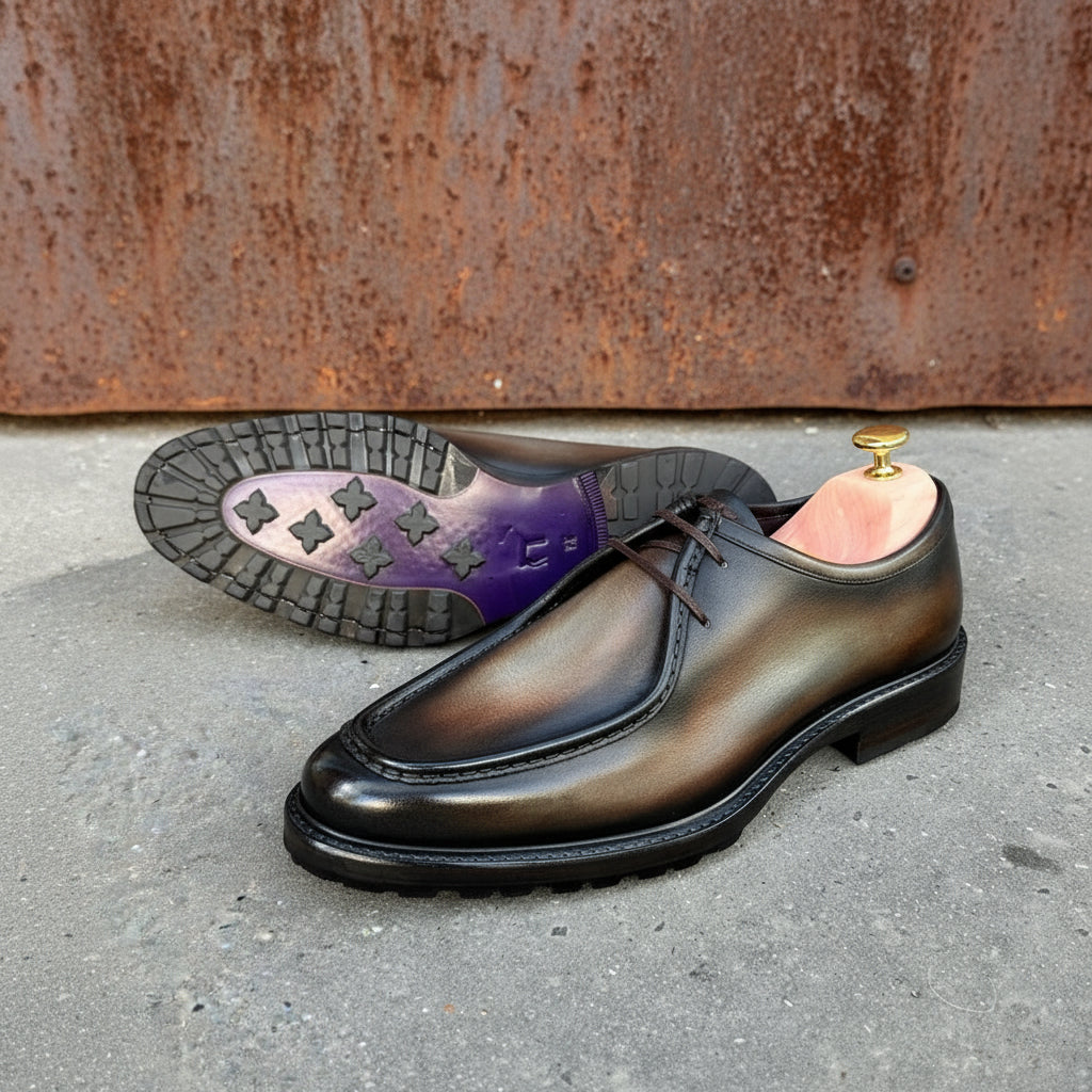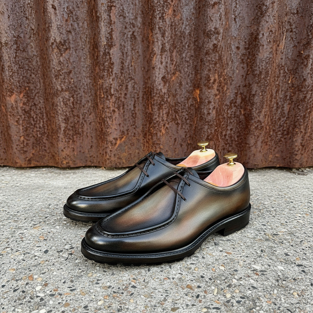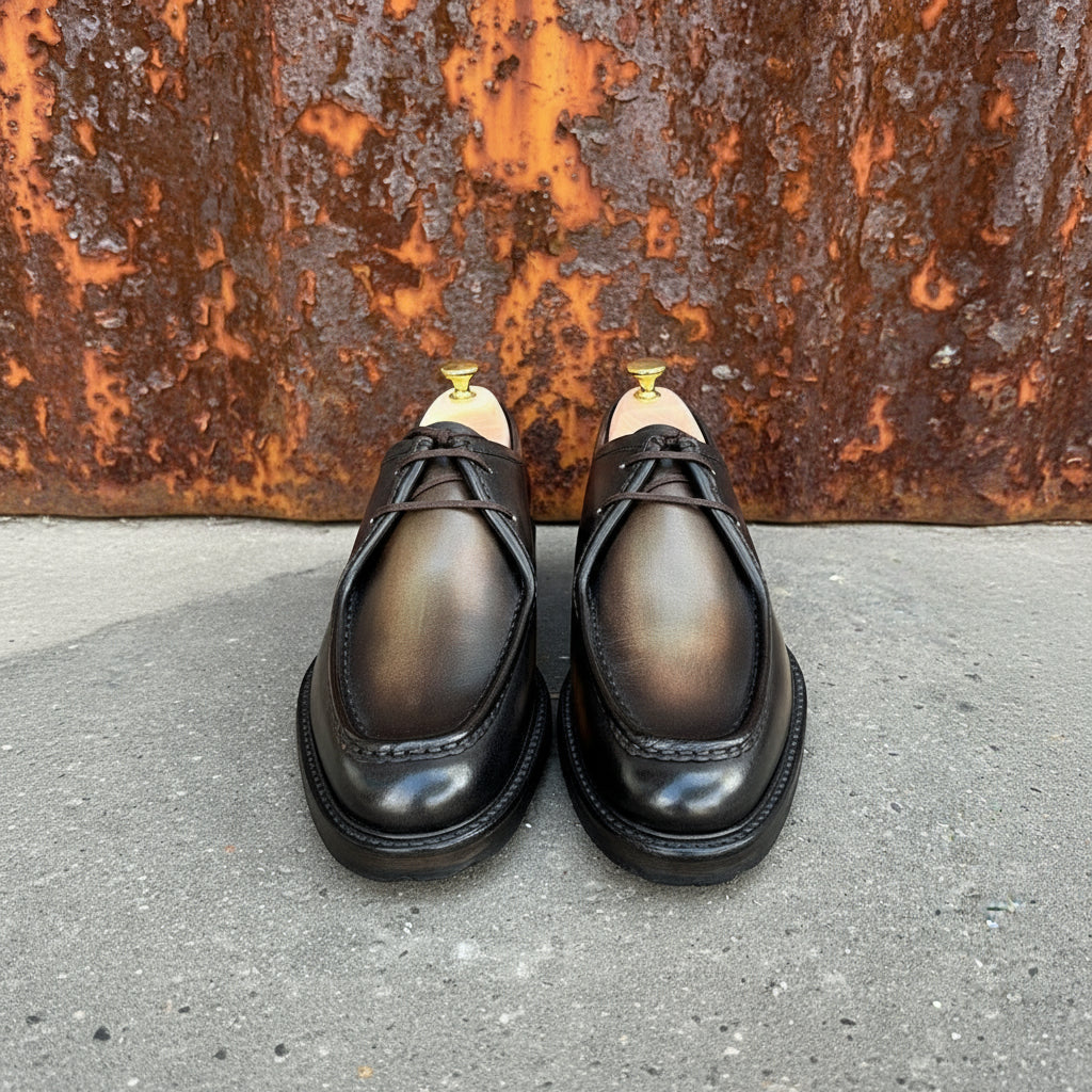 Ce Derby à semelle Cross est réalisé en montage Blake avec les meilleures peausseries françaises du Puy en Velay.